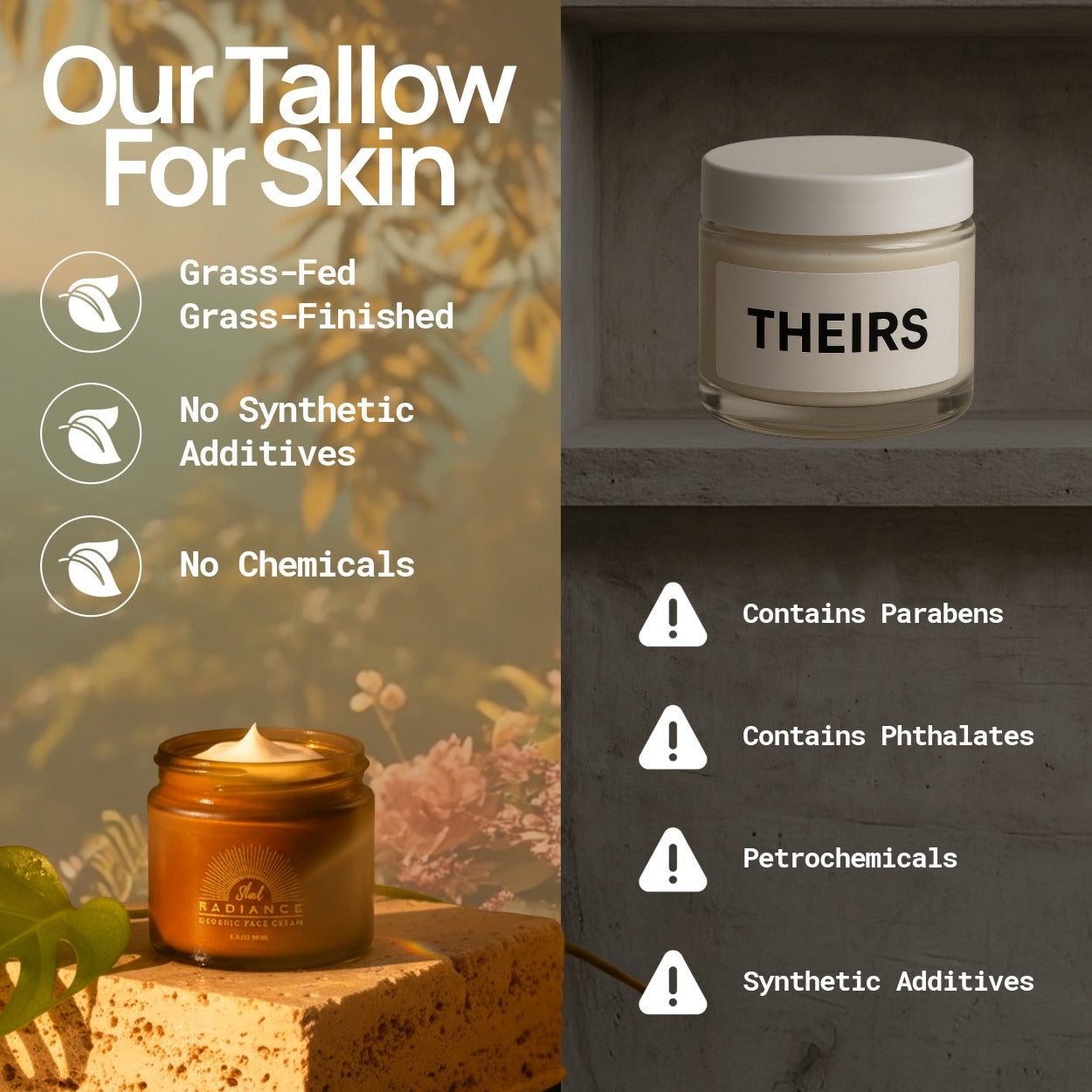 Our Shal Radiance Face Cream, was made to focus on the face, but people are using it as a tallow for skin product as well. Because of our list of powerful antioxidants and active free radical fighting botanical ingredients.